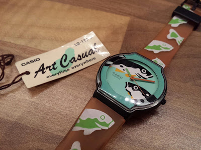Today's watch is a promotional watch for the anime series Neon Genesis Evangelion (or Shin Seiki Evangerion). It is an LED watch in the style of the computer displays from the series, with a 4 digit large block LED display. At the top of the watch, it shows as being for the organization NERV. In the series, NERV is a group controlled by the United Nations that was formed to combat the threat from the Angels, and they were responsible for creating the Evangelion units (Evas). The other text on the front is in Japanese, so I'm not sure what it is about, so if any readers can translate, that'd be great!