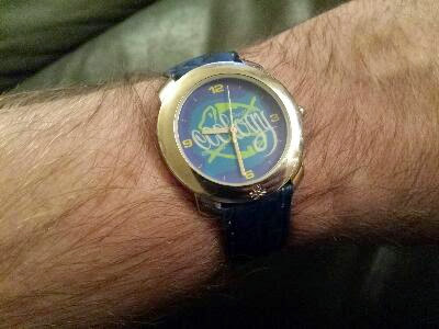 The watch is by a brand, or part of a line called Person's. It is a slim LCD watch with an offset head and a 4 digit inverse LCD watch. The LCD is in the centre of a mirrored section of face and is actually difficult to see without good light. It is a simple watch module, and only has time, date, and seconds views.